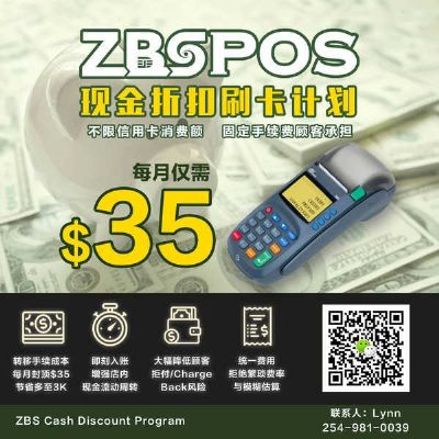 富国 ZBS 仅$35/月 刷卡收费 -现金优惠计划 [美容美发刷卡]